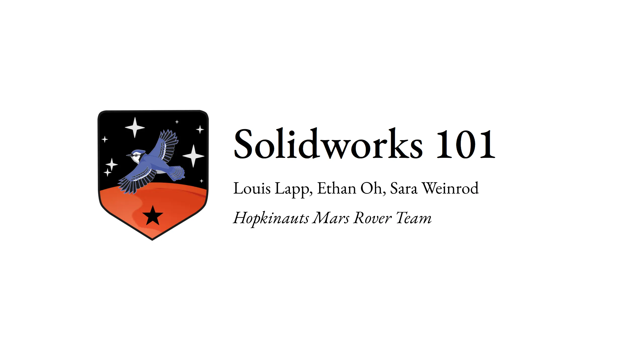 title slide of the Solidworks 101 workshop